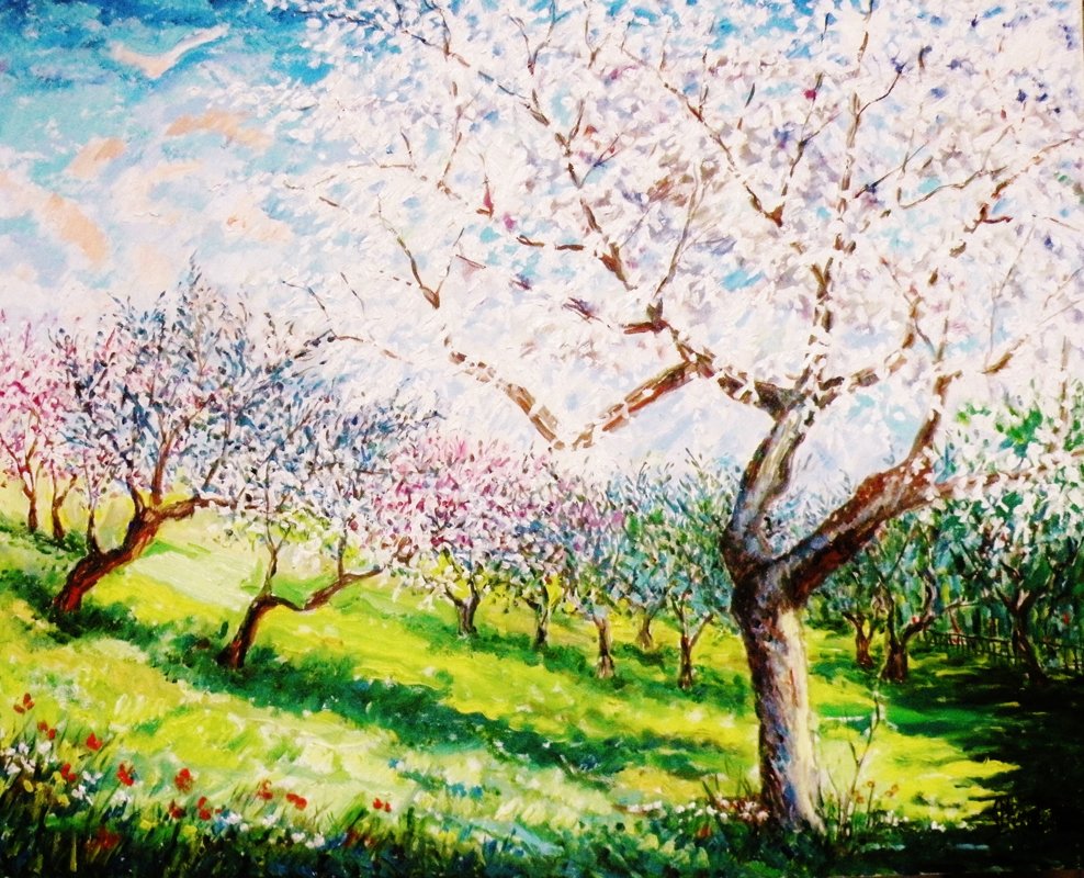 TRABOCCO A PRIMAVERA - Olio su tela 70 x 50